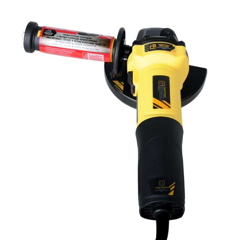 Быстросъемный защитный кожух Боковая рукоятка Разметочный карандаш с твердосплавным наконечником Фланцевый ключ Винт с гайкой Инструкция по эксплуатации Инструкция по безопасности