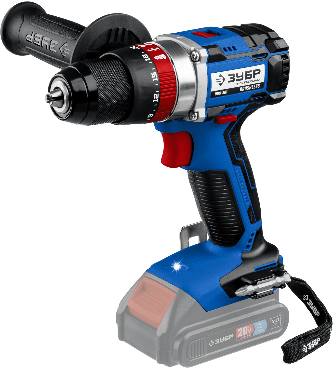 -Скоба крепления на поясе и битодержатель устанавливаются с любой стороны инструмента;