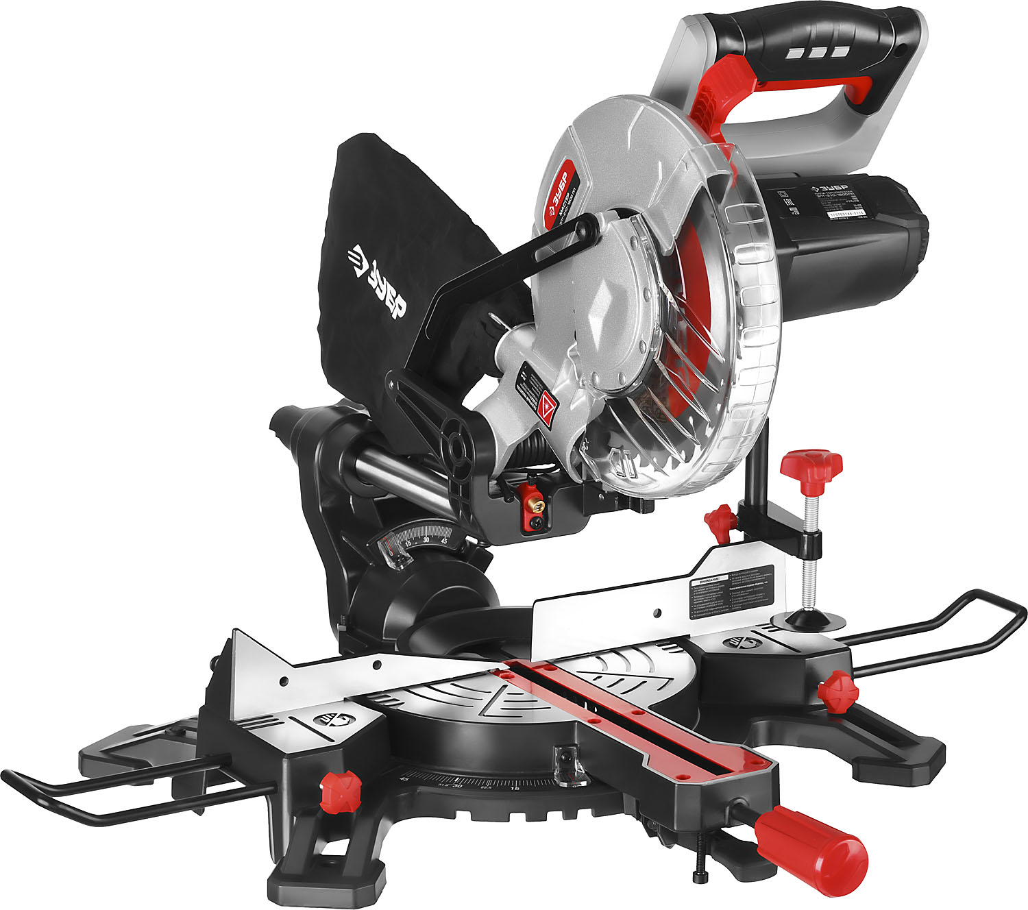 - Фиксирующийся в любом положении поворотный стол и удобная регулировка наклона облегчают установку угла пиления;