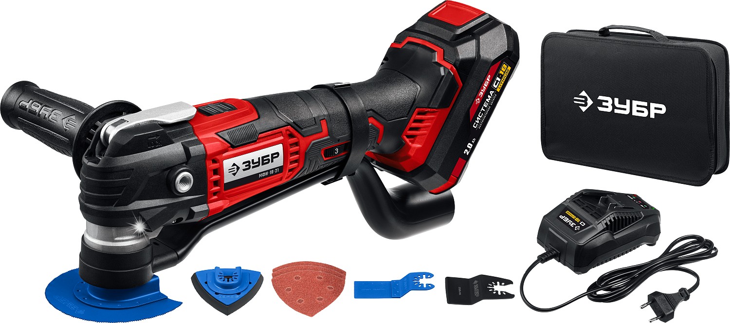 ЗУБР C1-18, 18 В, OQIS, АКБ (2 А·ч), реноватор, сумка, набор насадок (МФИ-18-21)