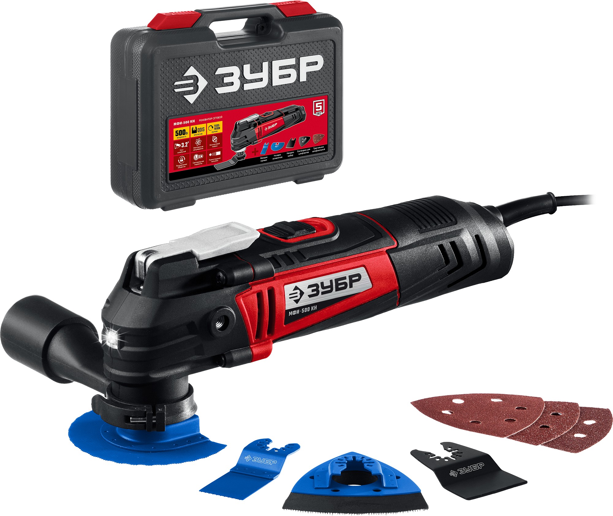 ЗУБР OQIS, 500 Вт, реноватор, кейс, набор насадок (МФИ-500 КН)