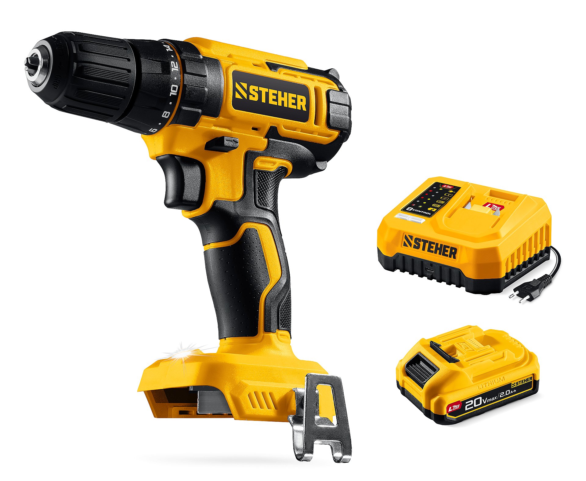 STEHER 20 В, 45 Н·м, 1 АКБ LMS (2 А·ч), бесщеточная ударная дрель-шуруповерт (CBS-45-21)