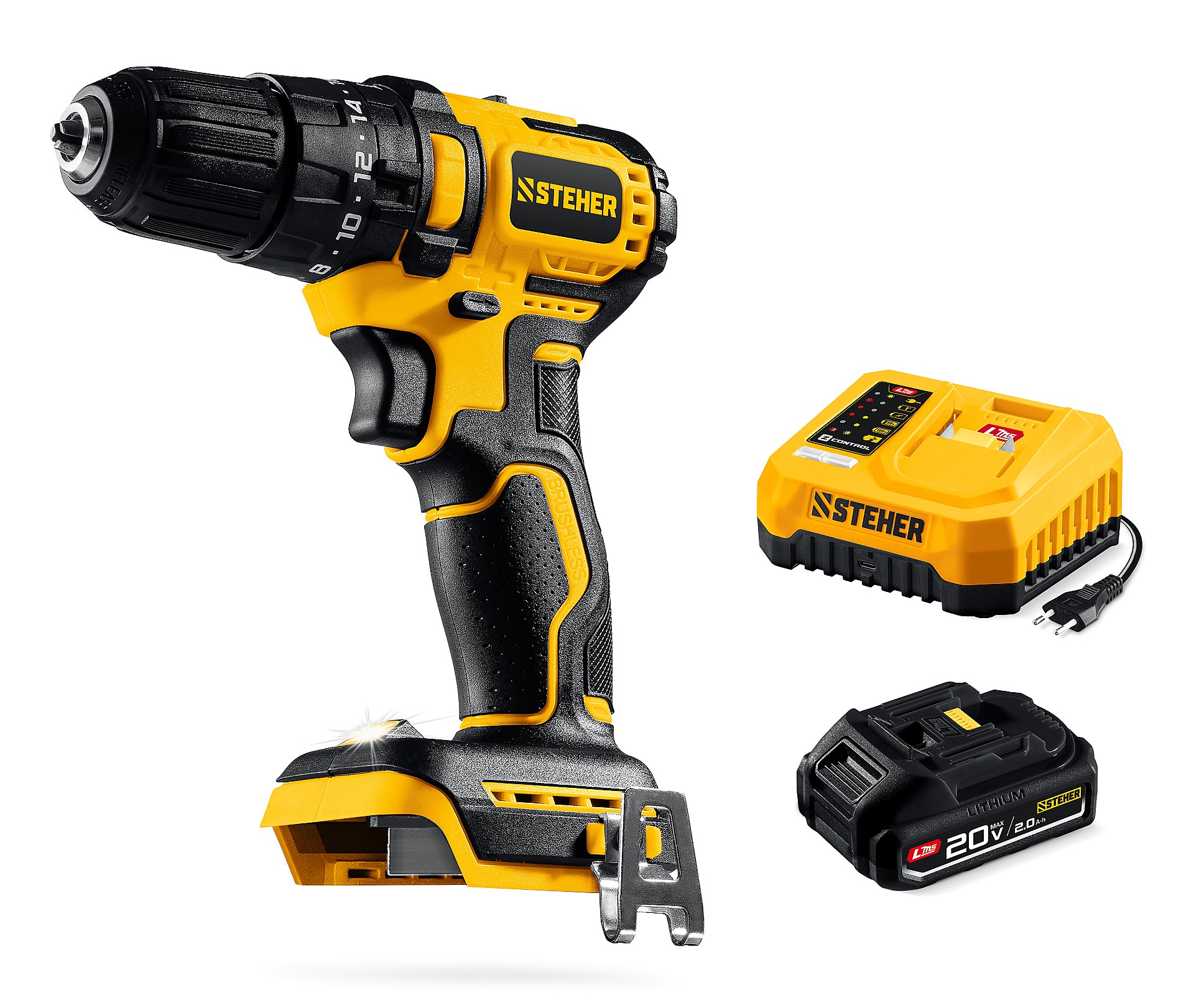 STEHER 20 В, 45 Н·м, 1 АКБ LMS (2 А·ч), бесщеточная ударная дрель-шуруповерт (CBS-45-21)