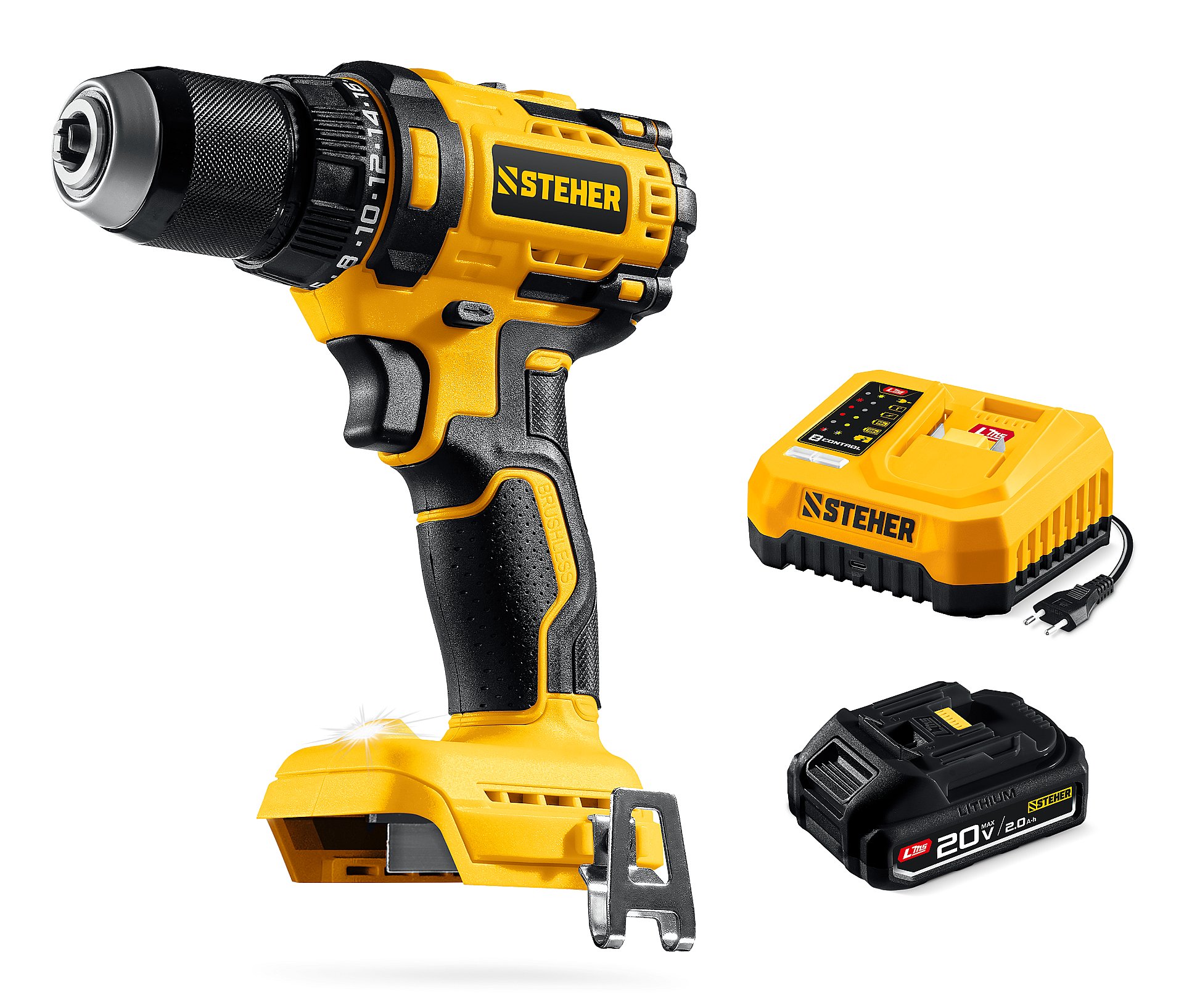 STEHER 20 В, 45 Н·м, 1 АКБ LMS (2 А·ч), бесщеточная ударная дрель-шуруповерт (CBS-45-21)