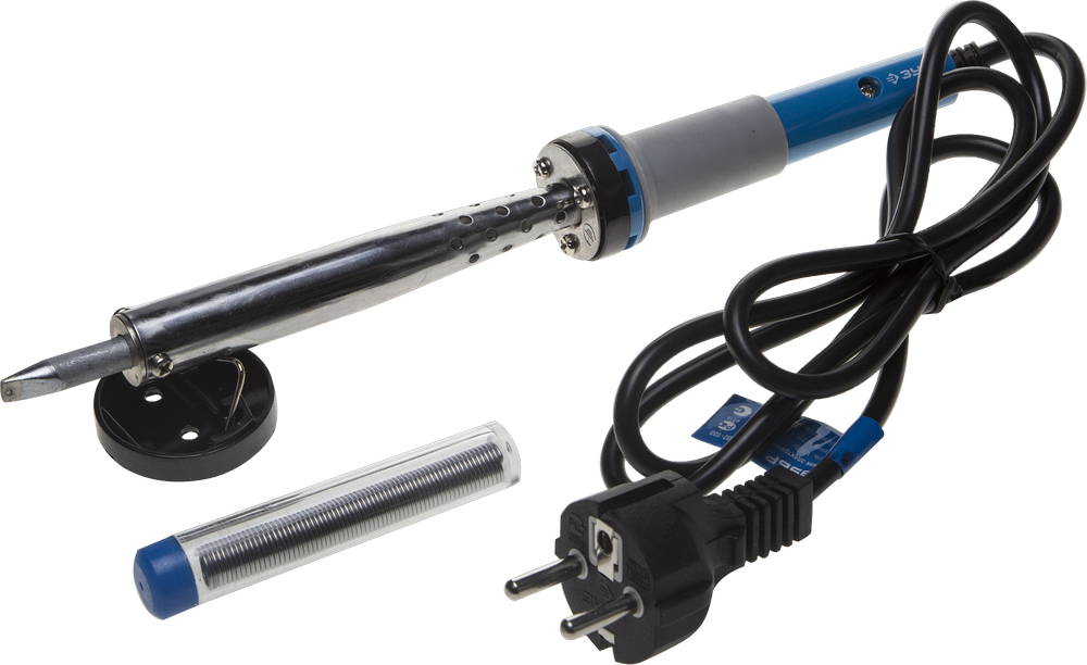 ЗУБР 100 Вт, в наборе: припой + подставка, 2к рукоятка, клин, керамический нагреватель, электропаяльник (55402-100)