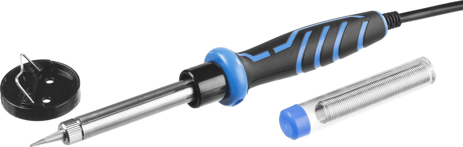 ЗУБР 60 Вт, в наборе: припой + подставка, 2к рукоятка, конус, керамический нагреватель, электропаяльник, Профессионал (55402-60)