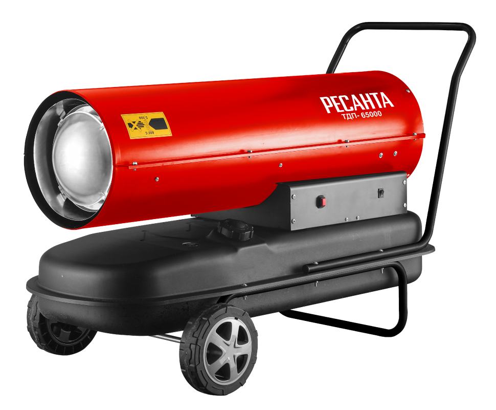 Дизельная тепловая пушка РЕСАНТА ТДП-65000 - функциональный обогреватель с прямым нагревом для отопления складских, строительных и других помещений.Тепловые пушки с прямым нагревом прогоняют воздушную массу непосредственно через горящее пламя, отдающее ей тепло, тем самым подавая в отапливаемую зону со всеми отходами, выделяемыми при горении дизельного топлива (солярки). Иными словами, дым, сажа и прочее попадают непосредственно в отапливаемую зону.Преимущества: