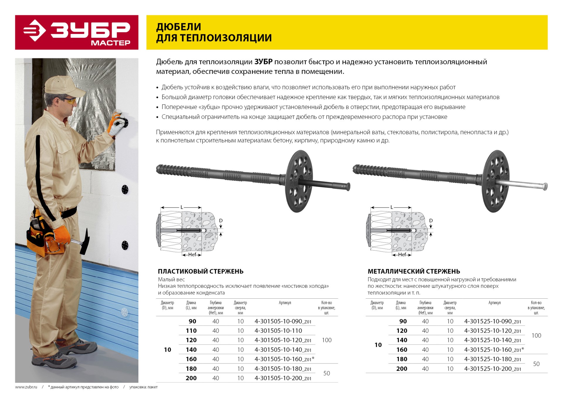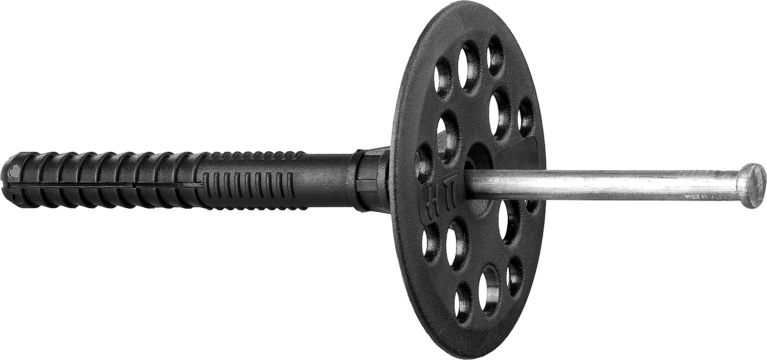 -Металлический гвоздь позволяет использовать дюбель в местах с повышенной нагрузкой и требованиями по жесткости: нанесение штукатурного слоя поверх теплоизоляции и т.п.;