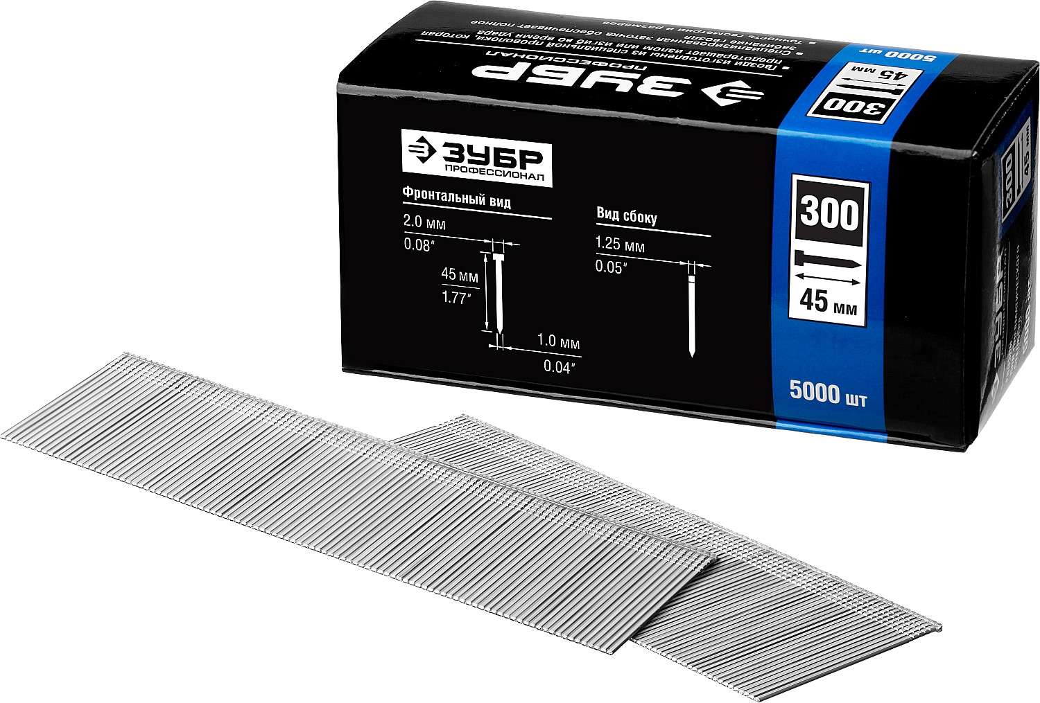 ЗУБР гвозди тип 300 (47/J/F), 45 мм, калибр 18GA. 5000 шт. Профессионал (31830-45)