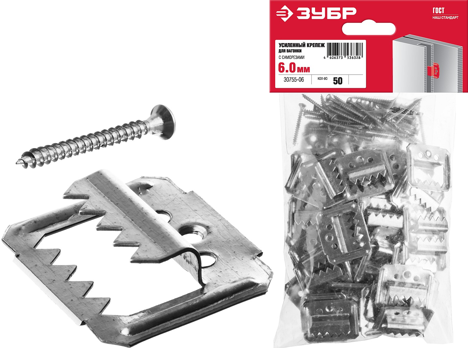 ЗУБР Кляймер-У2, 6 мм, 50 шт, усиленный крепеж для вагонки с саморезами (30755-06)