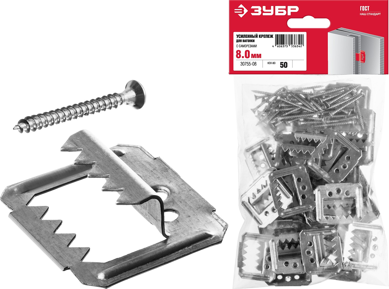 ЗУБР Кляймер-У2, 8 мм, 50 шт, усиленный крепеж для вагонки с саморезами (30755-08)
