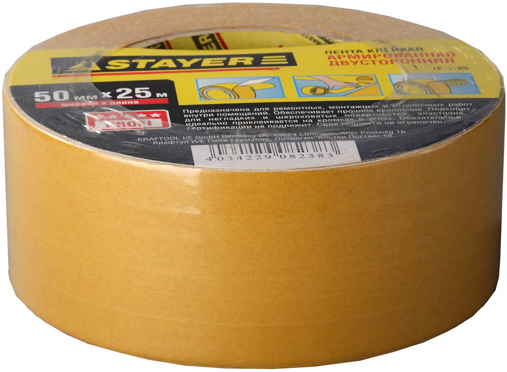 STAYER 50 мм, 25 м, на полипропиленовой основе, двухсторонняя клейкая лента (1221-50-25)