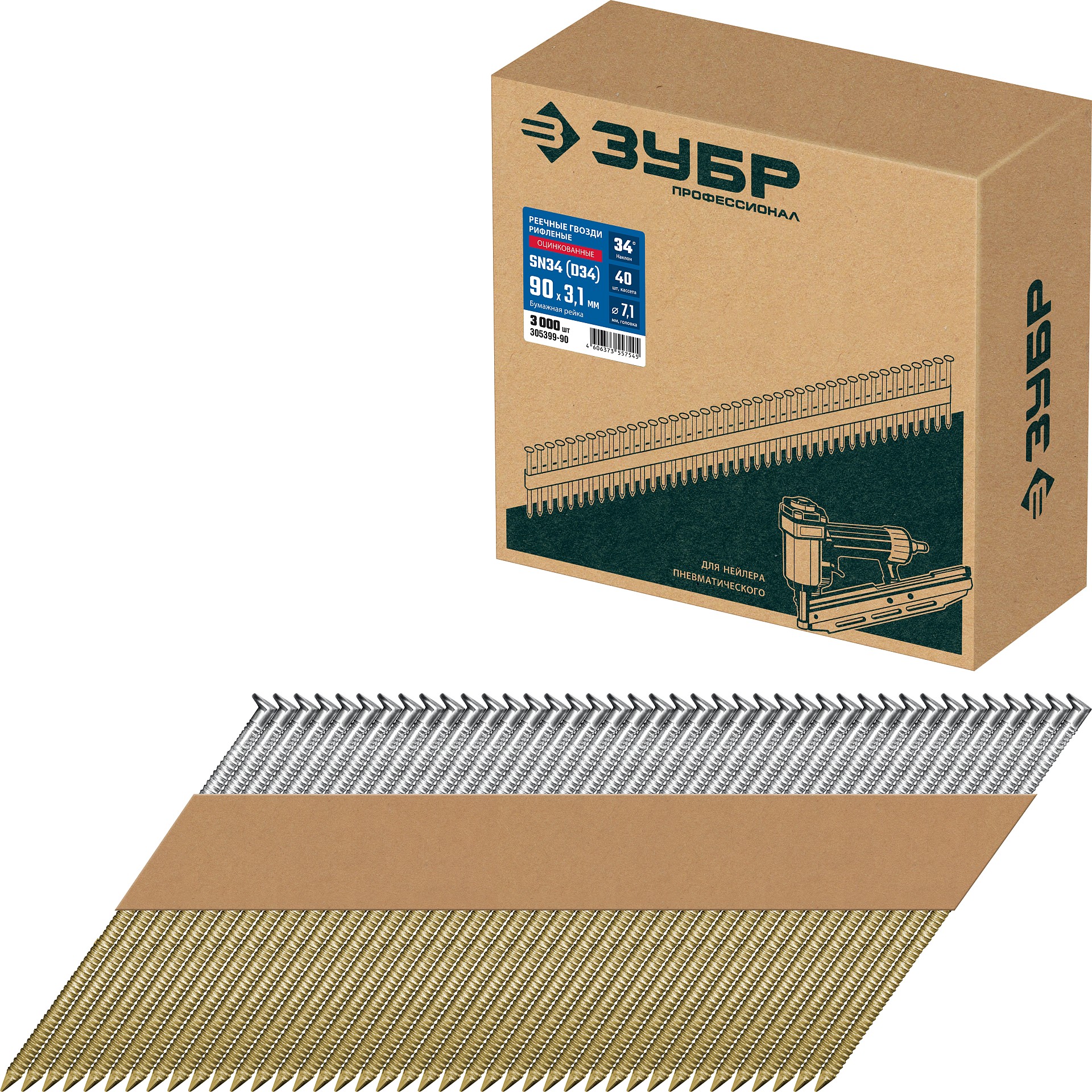 ЗУБР SN34 (D34) 90 х 3.1 мм, реечные гвозди рифленые оцинкованные, 3000 шт (305399-90)