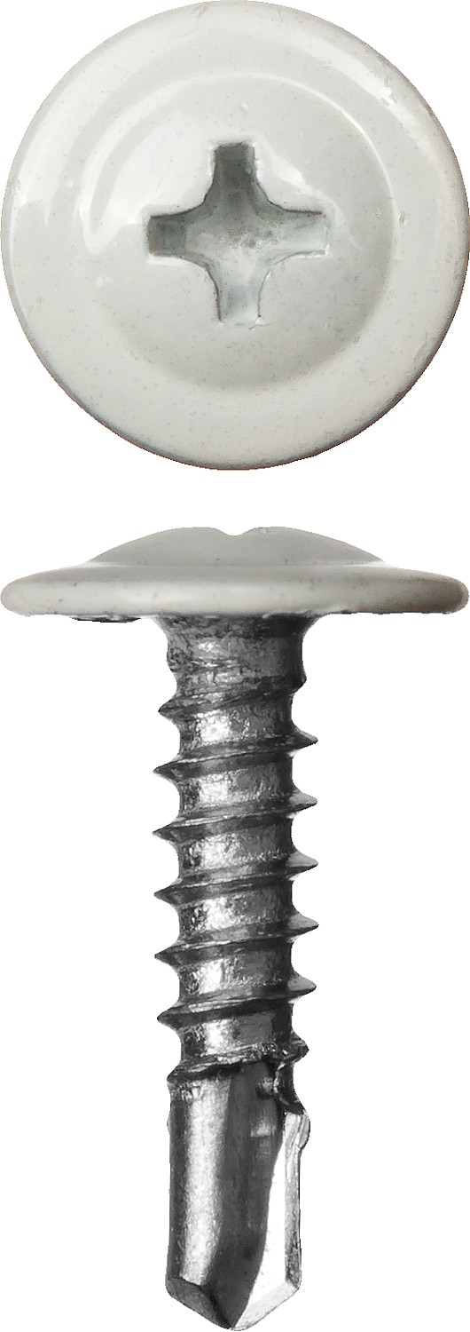 -Окраска головки с пресс-шайбой выполнена методом порошкового напыления. Cтандарт RAL поможет безошибочно подобрать саморезы под цвет соединяемых материалов.;