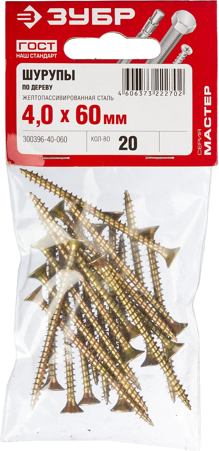 ЗУБР СУ-Ж, 60 х 4.0 мм, желтый цинк, 20 шт, универсальный саморез (300396-40-060)