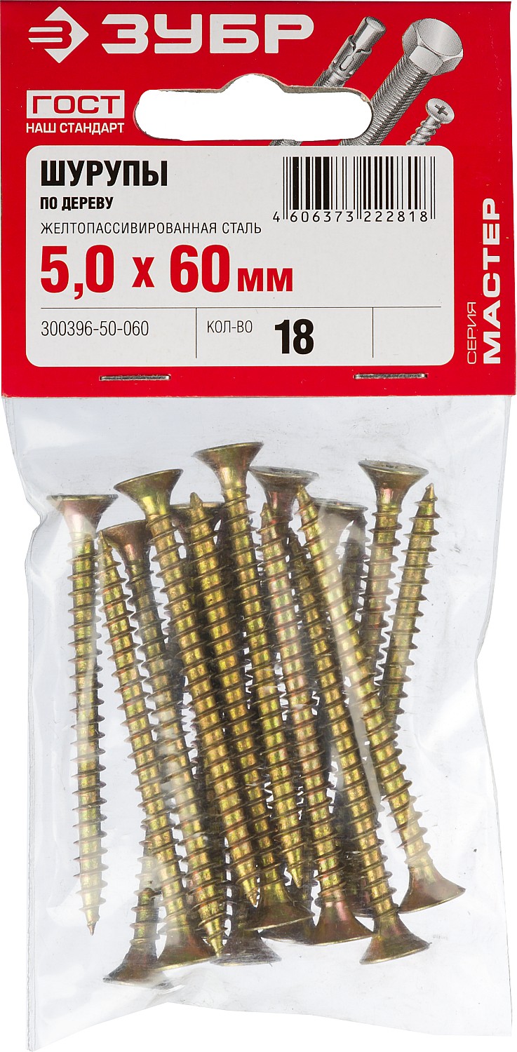 ЗУБР СУ-Ж, 60 х 5.0 мм, желтый цинк, 18 шт, универсальный саморез (300396-50-060)