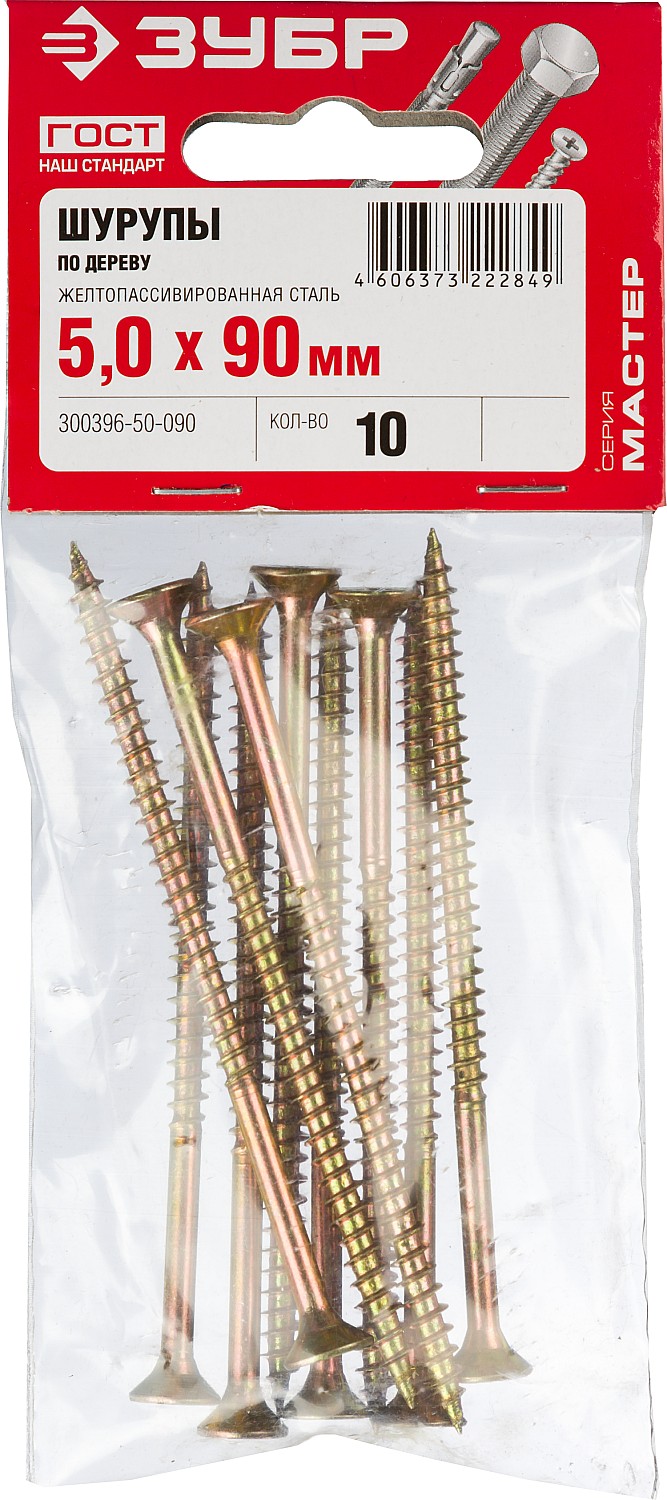 ЗУБР СУ-Ж, 90 х 5.0 мм, желтый цинк, 10 шт, универсальный саморез (300396-50-090)