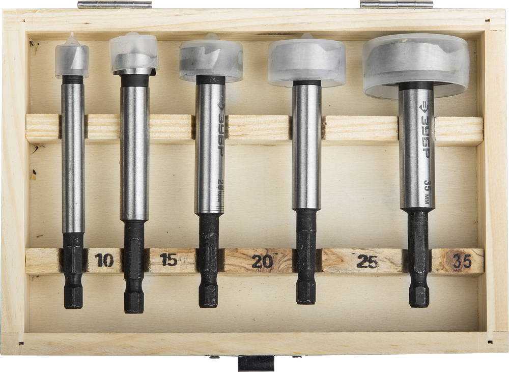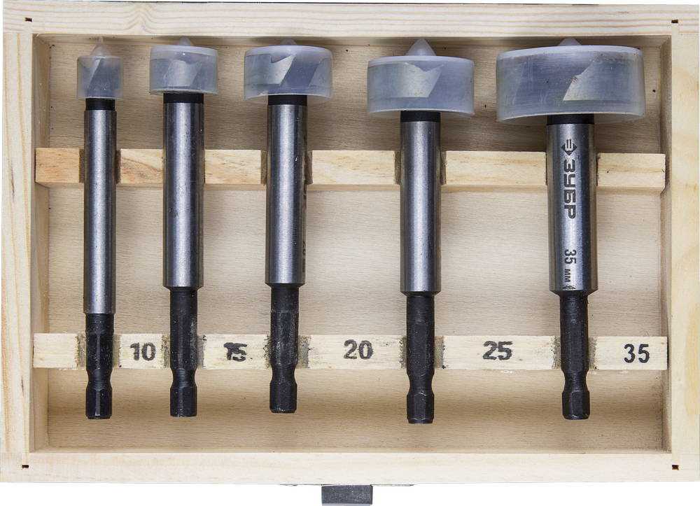 Набор ЗУБР Сверла Форстнера по дереву, шестигранный хвостовик 1/4", 10,15,20,25,35мм, 5пред, ЗУБР, ЭКСПЕРТ, 29993-H5