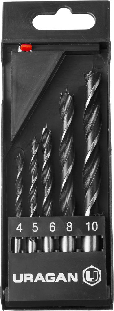 URAGAN 5 шт: 4-5-6-8-10 мм, набор спиральных сверл по дереву (29419-H5)