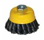MIRAX 100 мм, витая стальная латунированная проволока 0.3 мм, коническая щетка-крацовка для УШМ (35143-100)