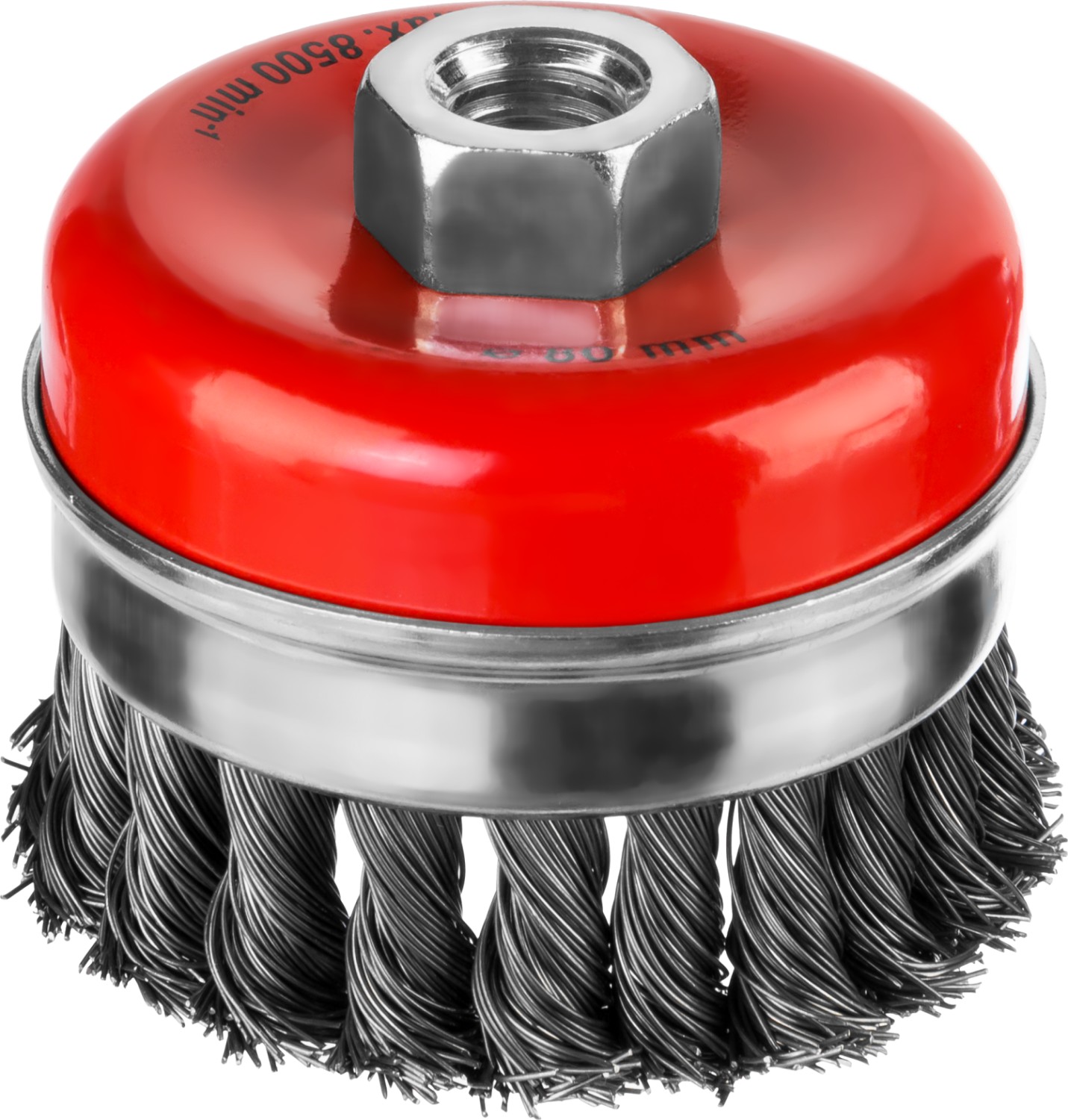 MIRAX 80 мм, жгутированная стальная проволока 0.5 мм, чашечная щетка-крацовка для УШМ (35144-080)
