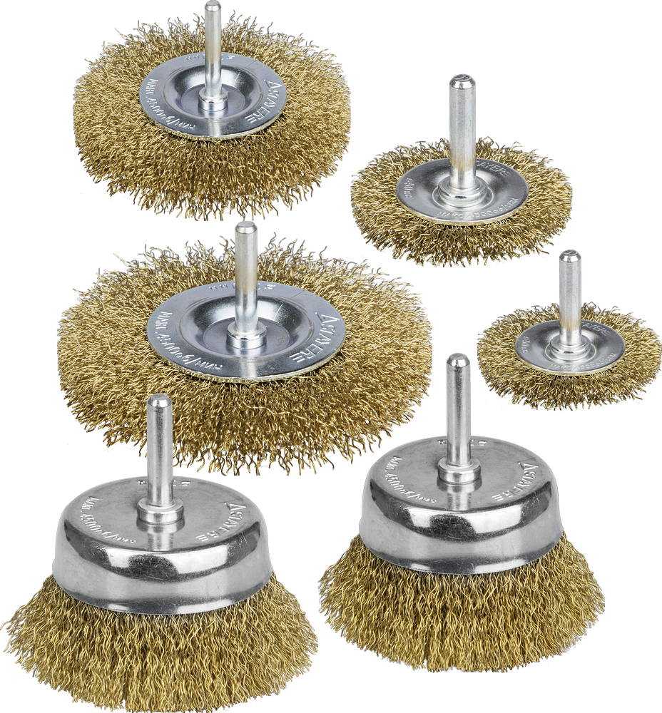 6 щеток крацовок: 2 дисковых 40 мм, чашечная 50 мм, дисковая 50, 65, 75 мм
