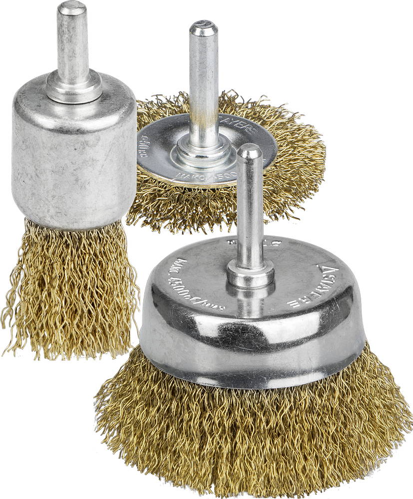 3 щетки крацовки: кистевая 25 мм, дисковая 50 мм, чашечная 50 мм.