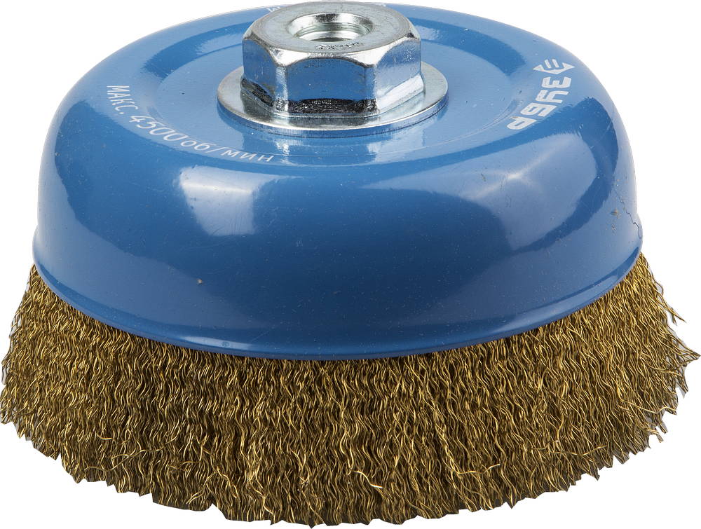 ЗУБР 150 мм, витая стальная латунированная проволока 0.3 мм, чашечная щетка-крацовка для УШМ (3526-150)