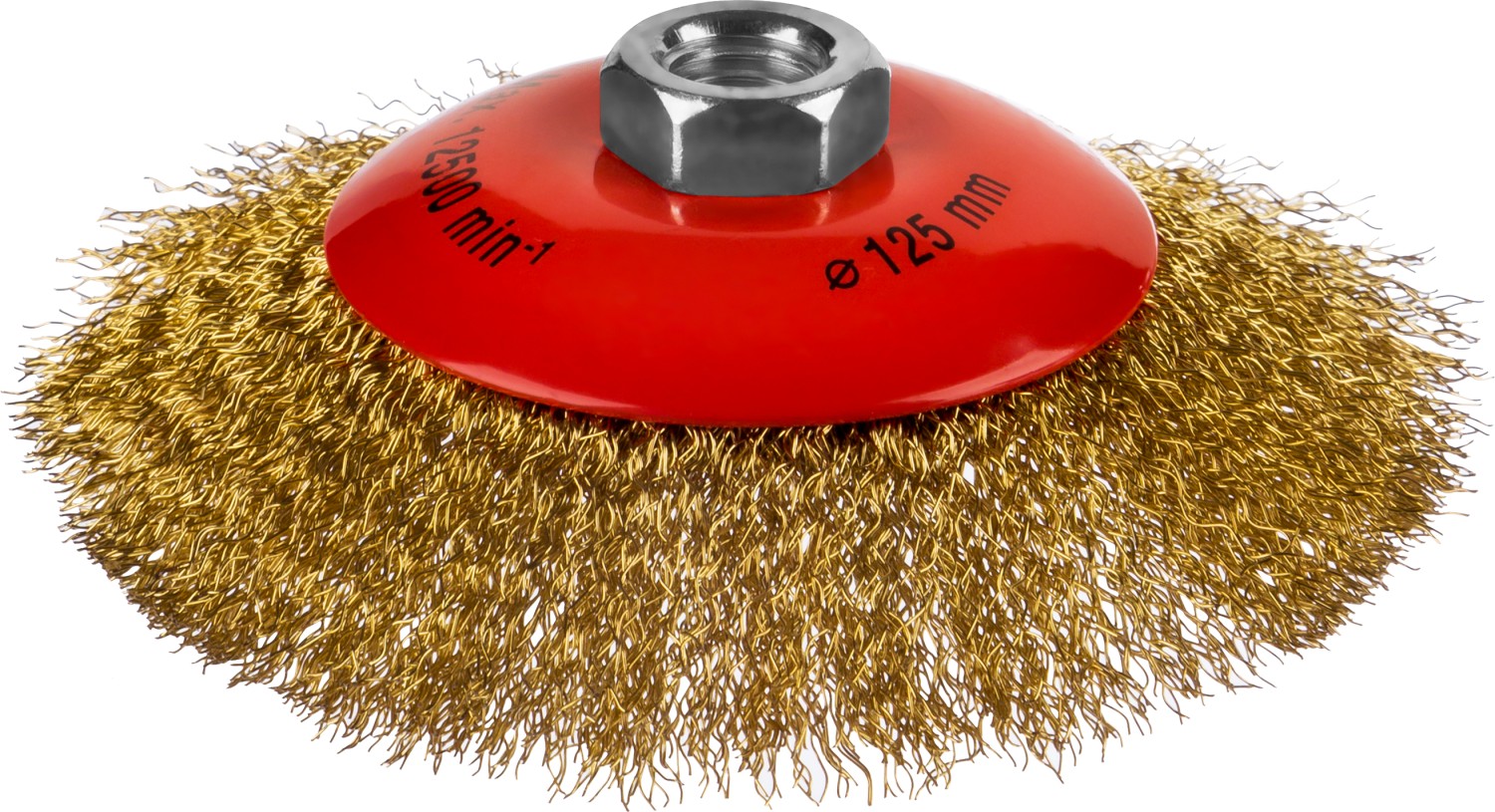 MIRAX 125 мм, витая стальная латунированная проволока 0.3 мм, коническая щетка-крацовка для УШМ (35143-125)