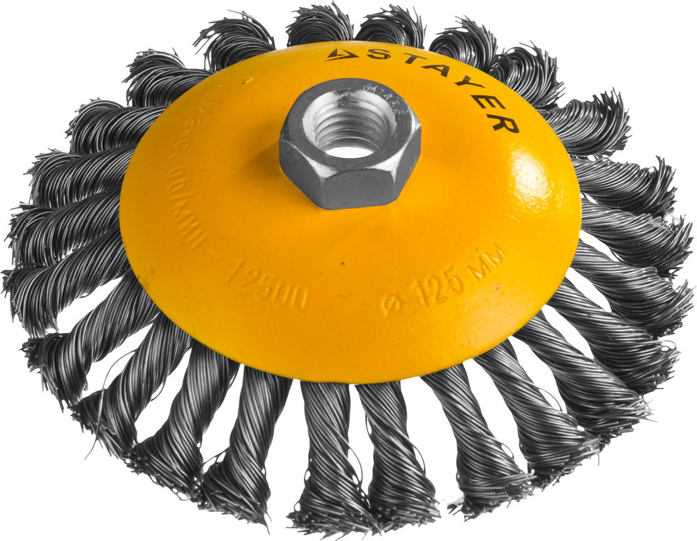 STAYER 125 мм, жгутированная стальная проволока 0.5 мм, коническая щетка-крацовка для УШМ, Professional (35135-125)