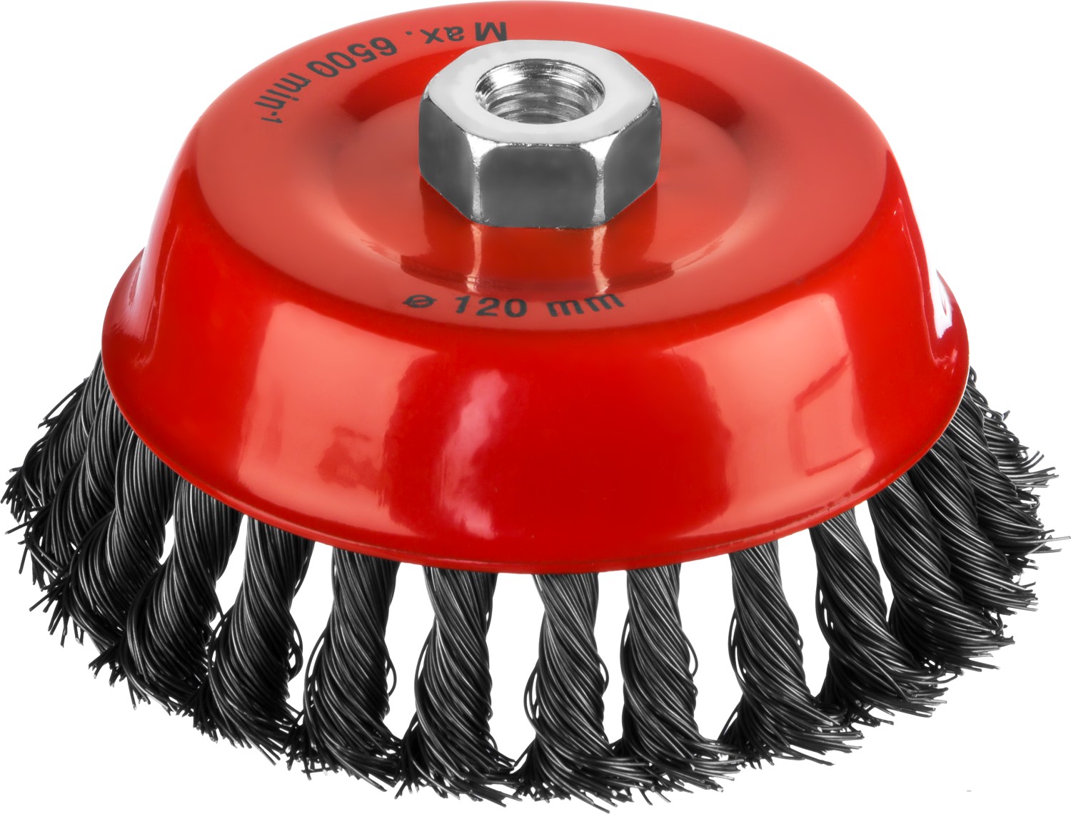 MIRAX 120 мм, жгутированная стальная проволока 0.5 мм, чашечная щетка-крацовка для УШМ (35104-120)Увеличить картинку