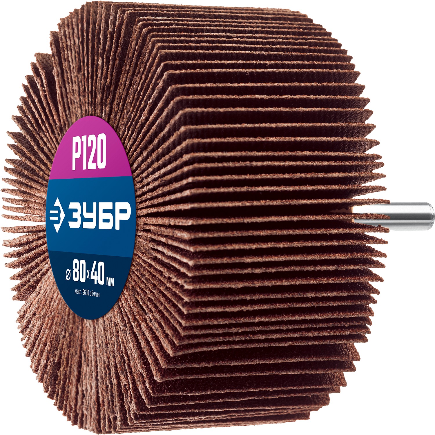 ЗУБР d 80 x 40 мм, P120, на шпильке d 6 мм, круг шлифовальный лепестковый, Профессионал (36604-120)