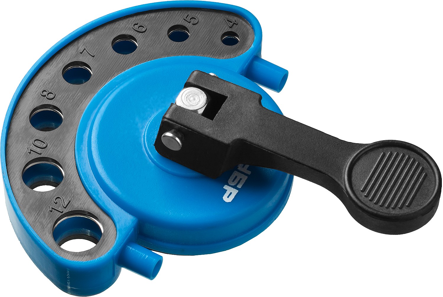 Вакуумная присоска позволяет точно спозиционировать кондуктор относительно предполагаемого места сверления.