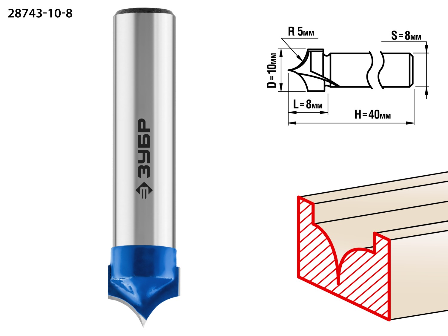 ЗУБР 10 x 8 мм, радиус 5 мм, фреза пазовая фасонная №4, Профессионал (28743-10-8)