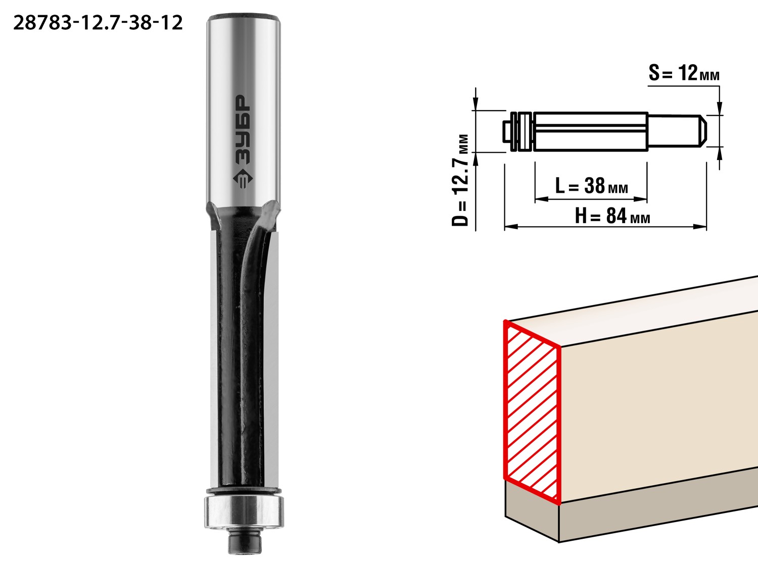 ЗУБР 12.7 x 38 мм, хвостовик 12 мм, фреза кромочная с нижним подшипником, Профессионал (28783-12.7-38-12)