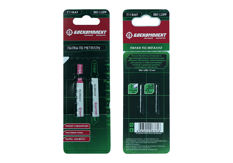 Пилки для лобзика по металлу T118AF, 2 шт, 76х50мм, шаг зуба 1,2мм, тонкий прямой рез, BIM, БОЕКОМПЛЕКТ