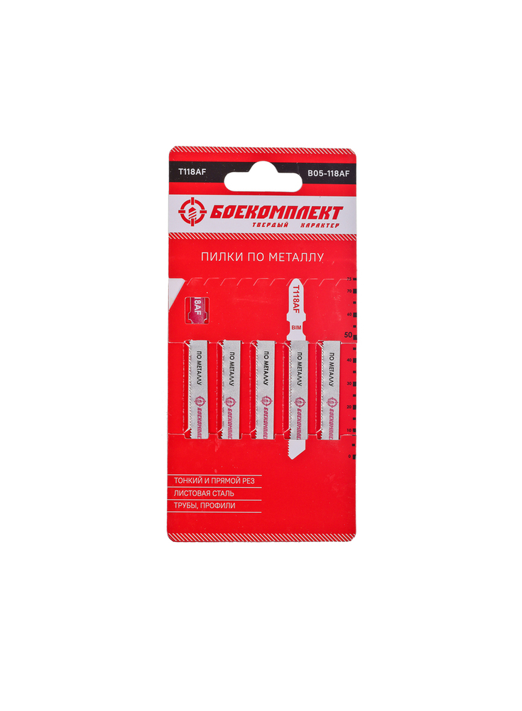 Пилки для лобзика по металлу T118AF, 5 шт, 76х50мм, шаг зуба 1,2мм, тонкий прямой рез, BIM, БОЕКОМПЛЕКТ
