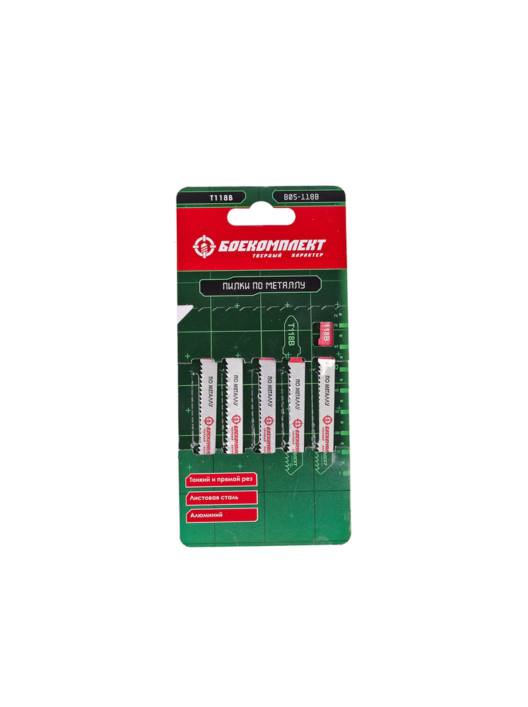 Пилки для лобзика по металлу T118B, 5 шт, 76х50мм, шаг зуба 2мм, тонкий прямой рез, HSS, БОЕКОМПЛЕКТ