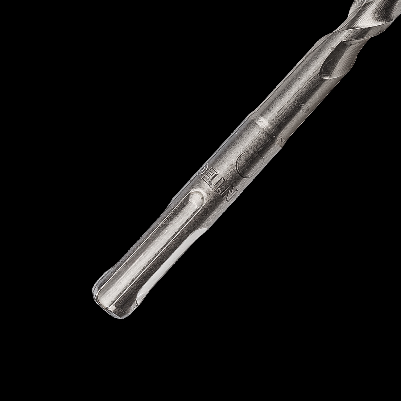 Цельный твердосплавный наконечник с двумя режущими кромками и острием позволяет обеспечивает быстрое и точное бурение в намеченном месте. Корпус бура из закаленной легированной стали более износостойкий, а широкая спираль позволяет увеличить скорость бурения и снизить нагрев, быстро и эффективно удаляя пыль на малой и средней глубине.