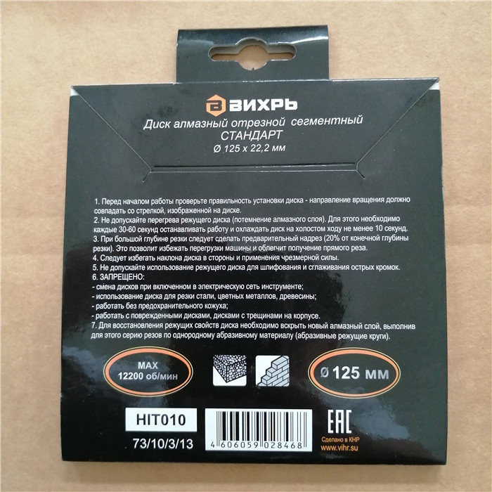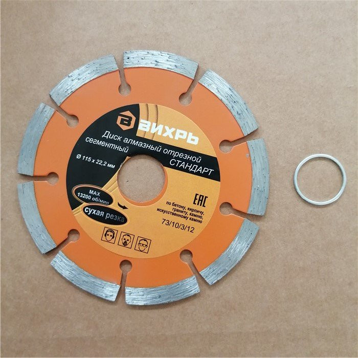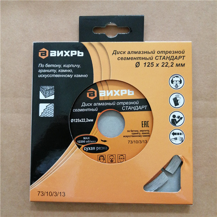 Диск алмазный отрезной сегментный СТАНДАРТ, 125 х 22,2 мм, сухая резка Вихрь - это алмазный отрезной диск, который используется совместно с угловыми шлифмашинами (болгарками) для сухой резки гранитных, бетонных, кирпичных и каменных изделий.Особенности: