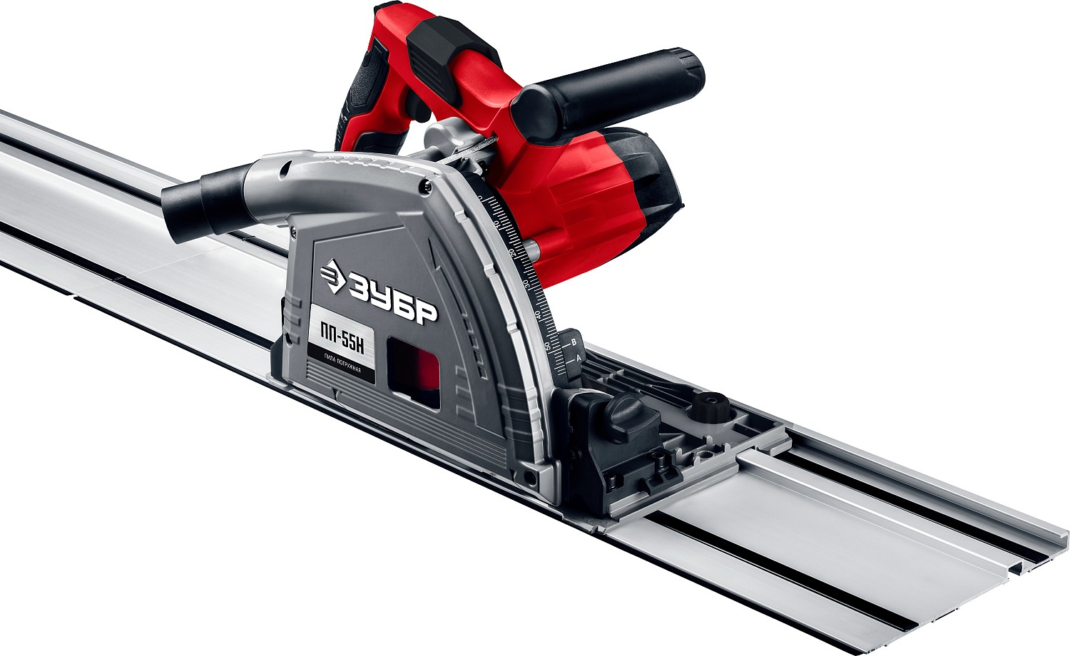 -Шкала глубины пиления имеет отметки уровня при работе с направляющей шиной или без нее;