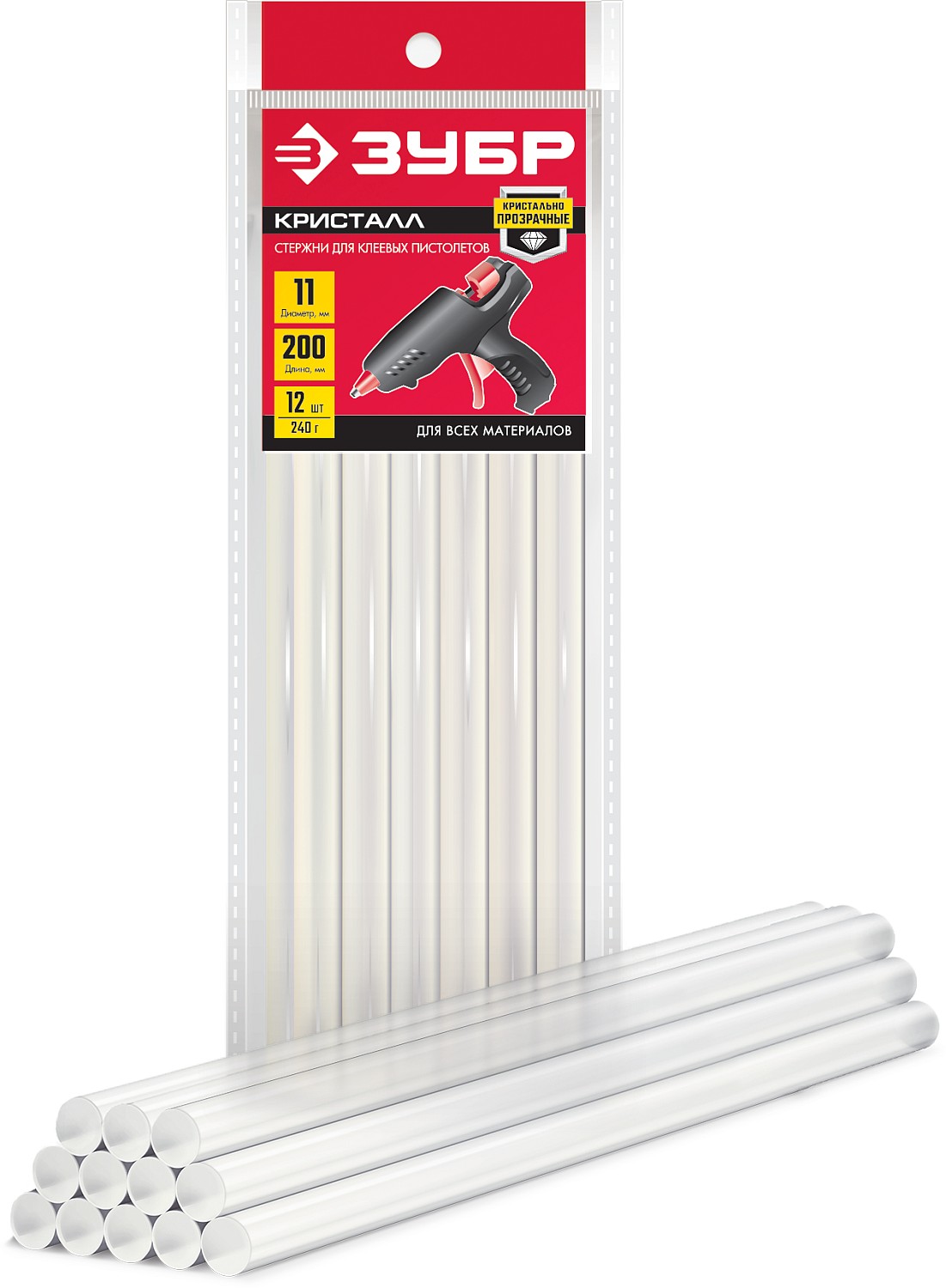ЗУБР 11 х 200 мм, 12 шт, прозрачные универсальные клеевые стержни (06854-12)