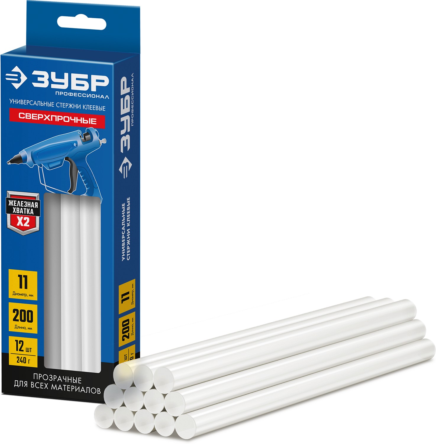 ЗУБР 11 х 200 мм, 12 шт, сверхпрочные прозрачные клеевые стержни, Профессионал (06856-12)