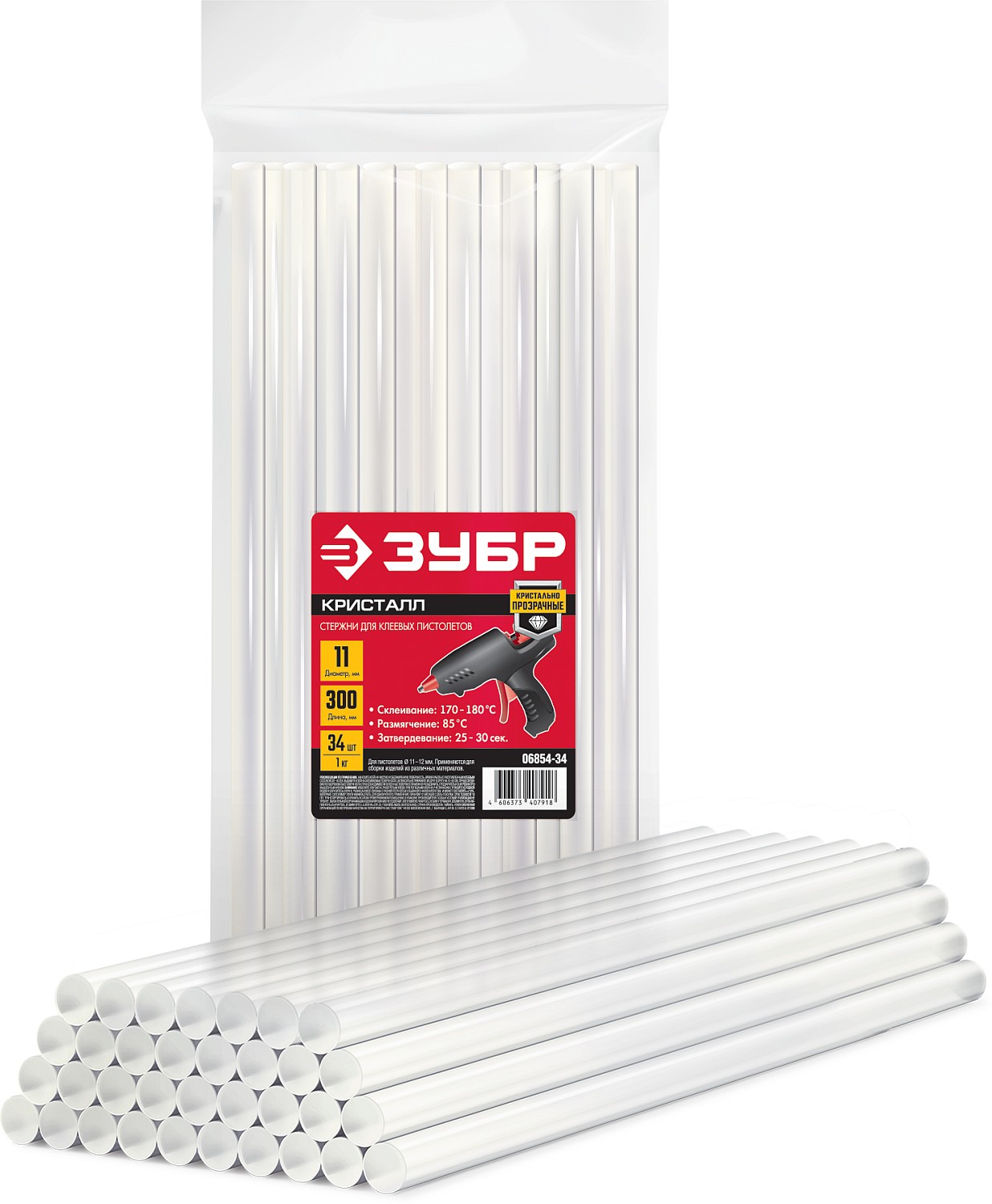 ЗУБР 11 х 300 мм, 34 шт, прозрачные универсальные клеевые стержни (06854-34)