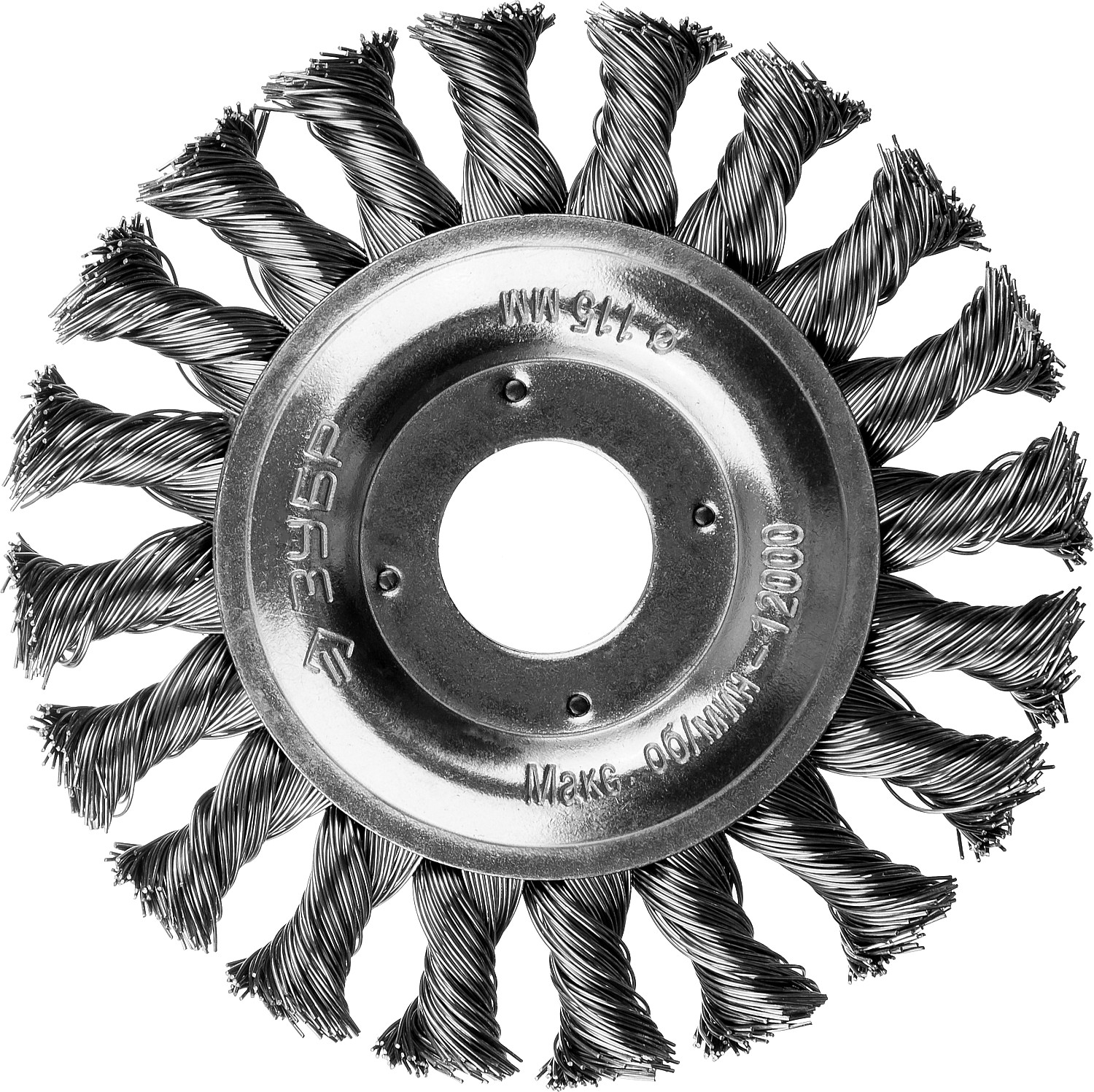 ЗУБР 115 мм, стальная проволоки 0.5 мм, щетка дисковая для УШМ, Профессионал (35190-115)