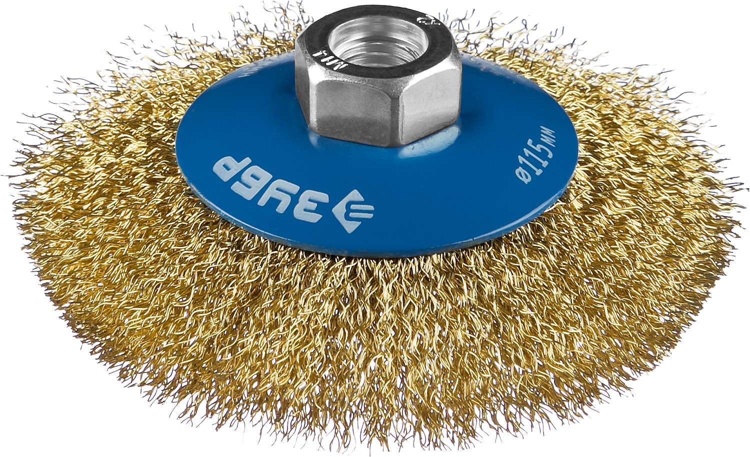 ЗУБР 115 мм, витая стальная латунированная проволока 0.3 мм, коническая щетка-крацовка для УШМ, Профессионал (35267-115)