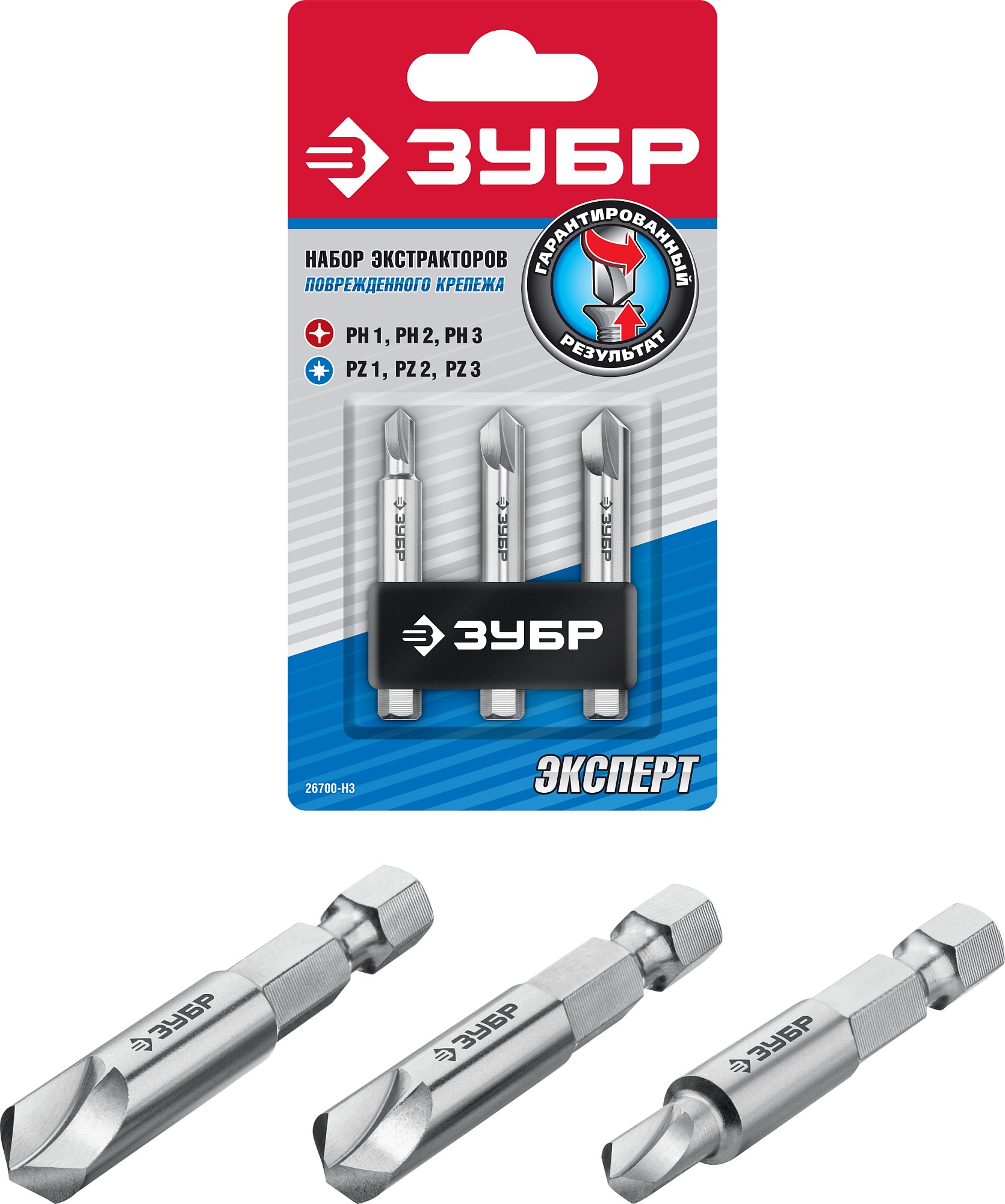 ЗУБР 3 шт, набор экстракторов поврежденного крепежа (26700-H3)