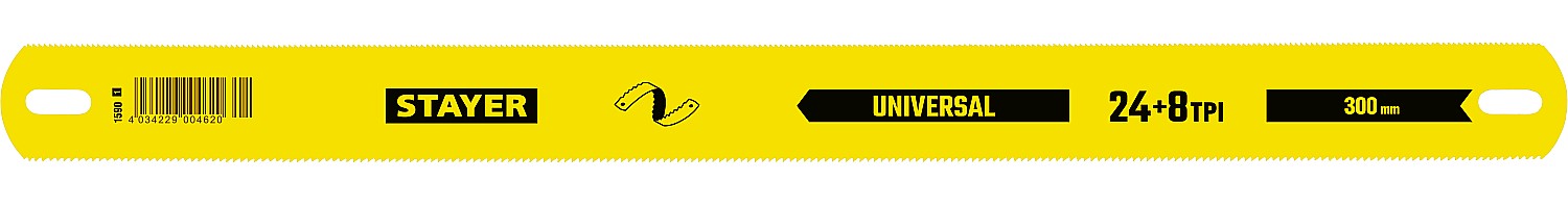 STAYER Universal, 8 + 24 TPI, 25 х 300 мм, 1 шт, коробка 50 шт, универсальное двустороннее широкое полотно по дереву и металлу (1591)