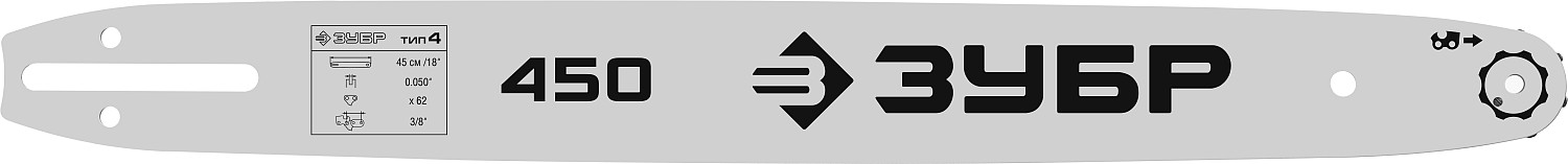 ЗУБР тип 4, шаг 3/8″, паз 1.3 мм, 45 см, шина для электро и бензо пил (70204-45)