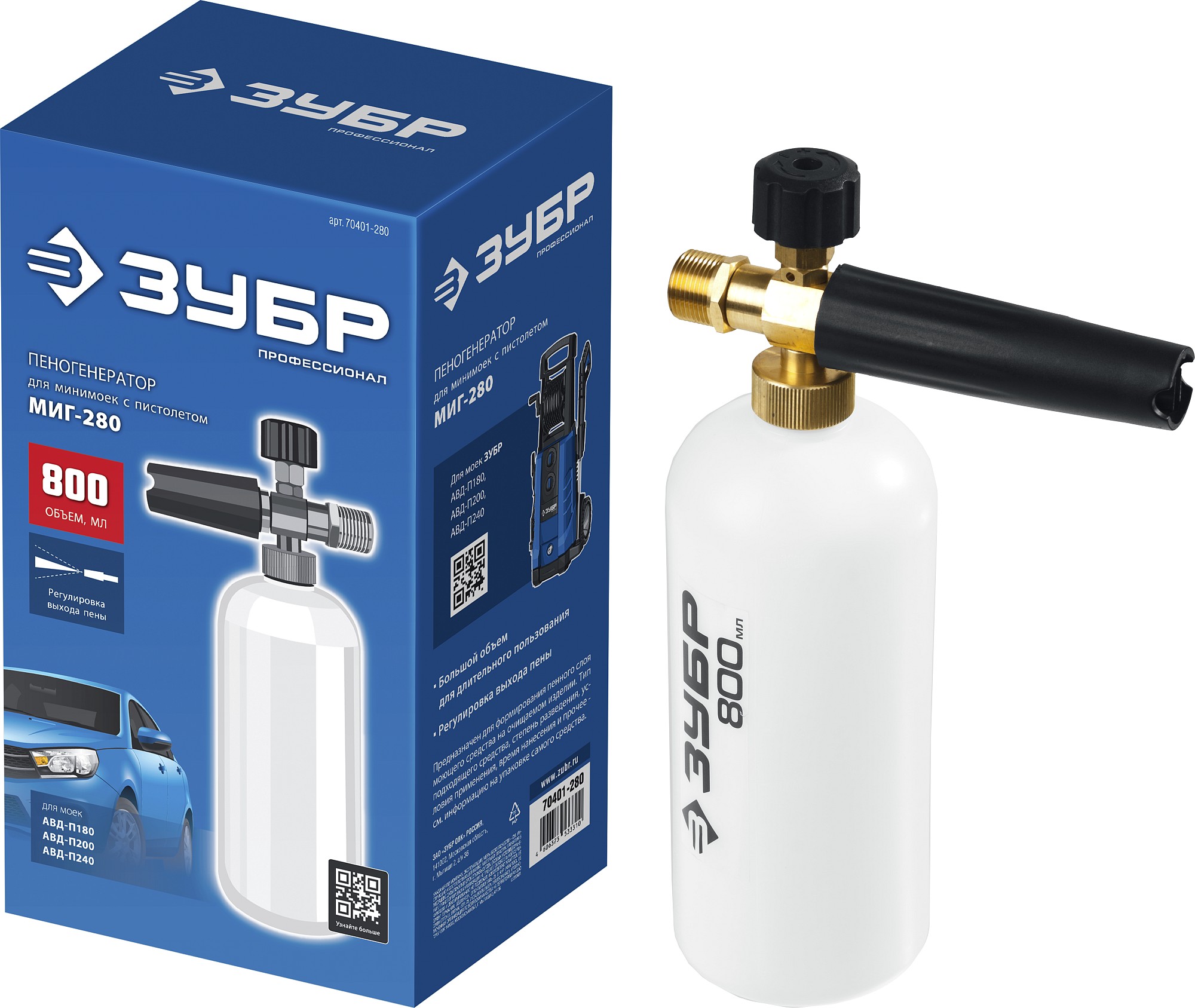 ЗУБР для пистолета МИГ-280, пеногенератор для минимоек (70401-280)